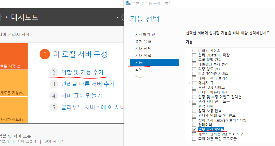 >> 서버관리자 -> 역할 및 기능추가 -> 쭉 넘어가서 텔넷 클라이언트 체크박스 표시 -> 확인